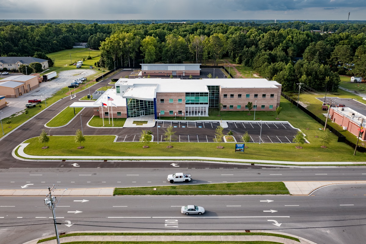 This new 11.5-acre home, located at 1322 Sunset Avenue in Clinton, includes a new 33,000 SF two-story Headquarters Building and a 9,000 SF, one-story Operations Building. The Headquarters Building includes a public-facing transaction area, large- and small-scale meeting spaces, multiple office suites, customer drive-thru capability, and a dedicated space for the Star Board of Directors. The Operations Building, located behind the Headquarters, includes a number of back-of-house support spaces, as well as a state-of-the-art broadcast studio. A sizable portion of the new property is being converted to pedestrian-friendly, vegetative green space for employees to enjoy and recharge. The building is to be LEED certified, the first of its kind in Sampson County.